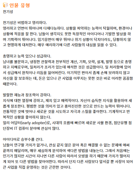 3)명반이 나온 페이지에서 화면을 아래로 내리면 자신의 기질과 특징에 대한 풀이가 나오게 됩니다.