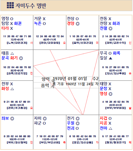 자미두수 명반은 한자도 많고 한눈에 보기 어려운 부분이 있습니다.