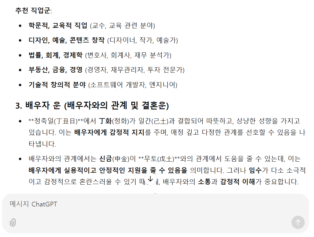 | chatgpt로 사주를 본 후기 ( 역술인 입장에서 ) (4) | 2025.01.18 |