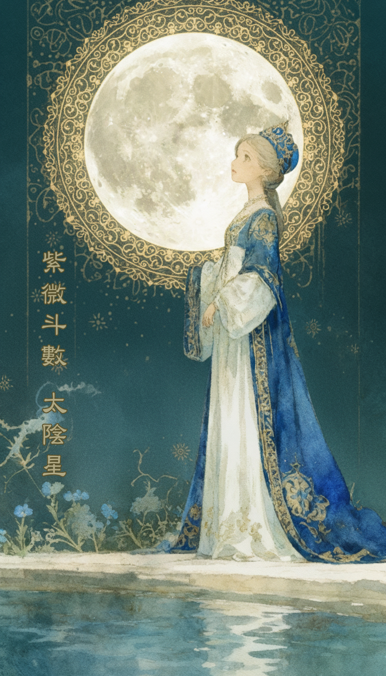 오늘은 자미두수 14주성 중 하나인 태음성(太陰星)에 대해 자세히 알아보겠습니다. 태음성은 부드러움 과 재물, 부드러운 리더십을 상징하는 별이므로 그 기본 특성부터 격국까지 체계적으로 살펴보겠습니다.